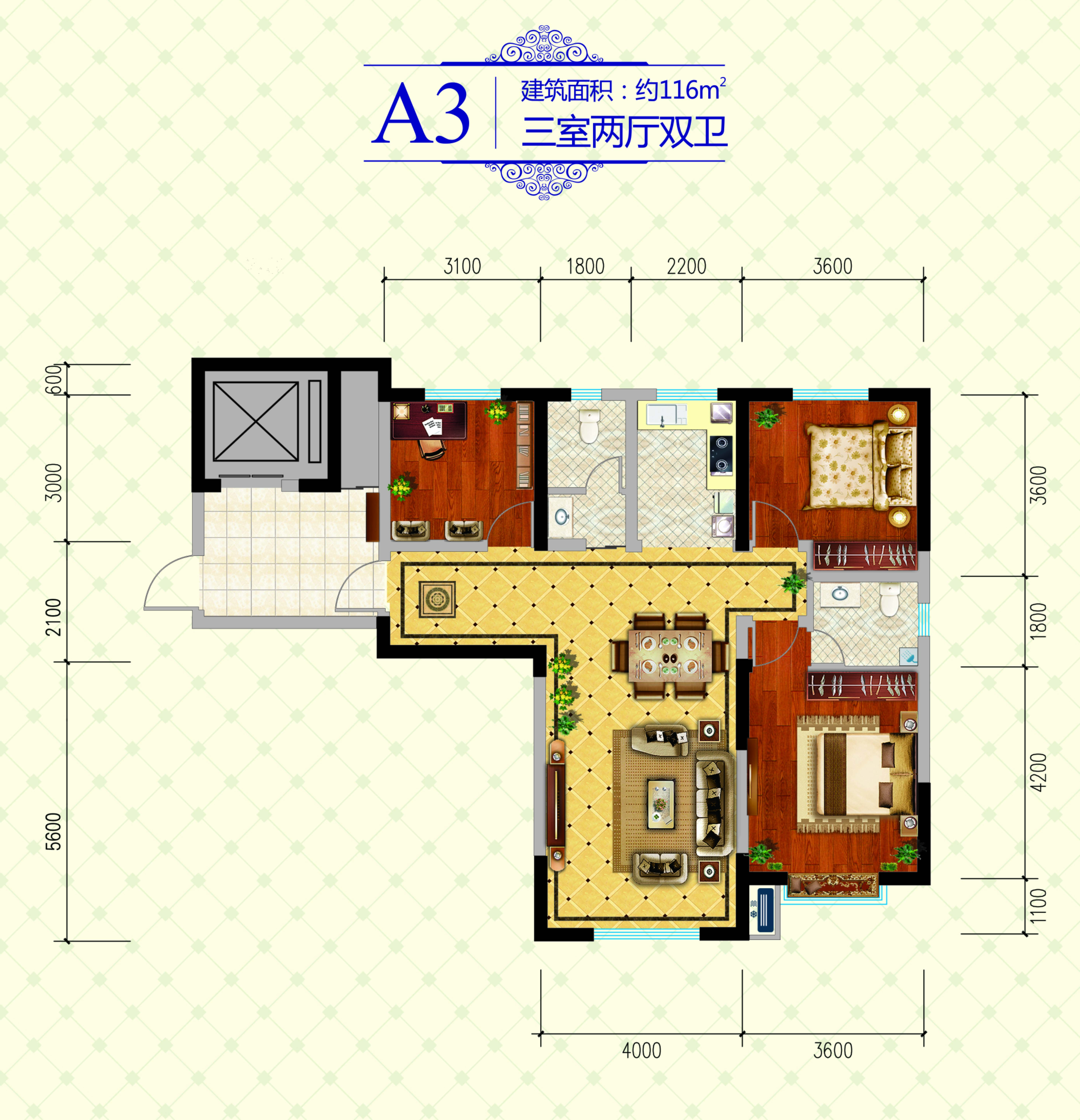 3室2厅2卫-A3户型 116㎡
