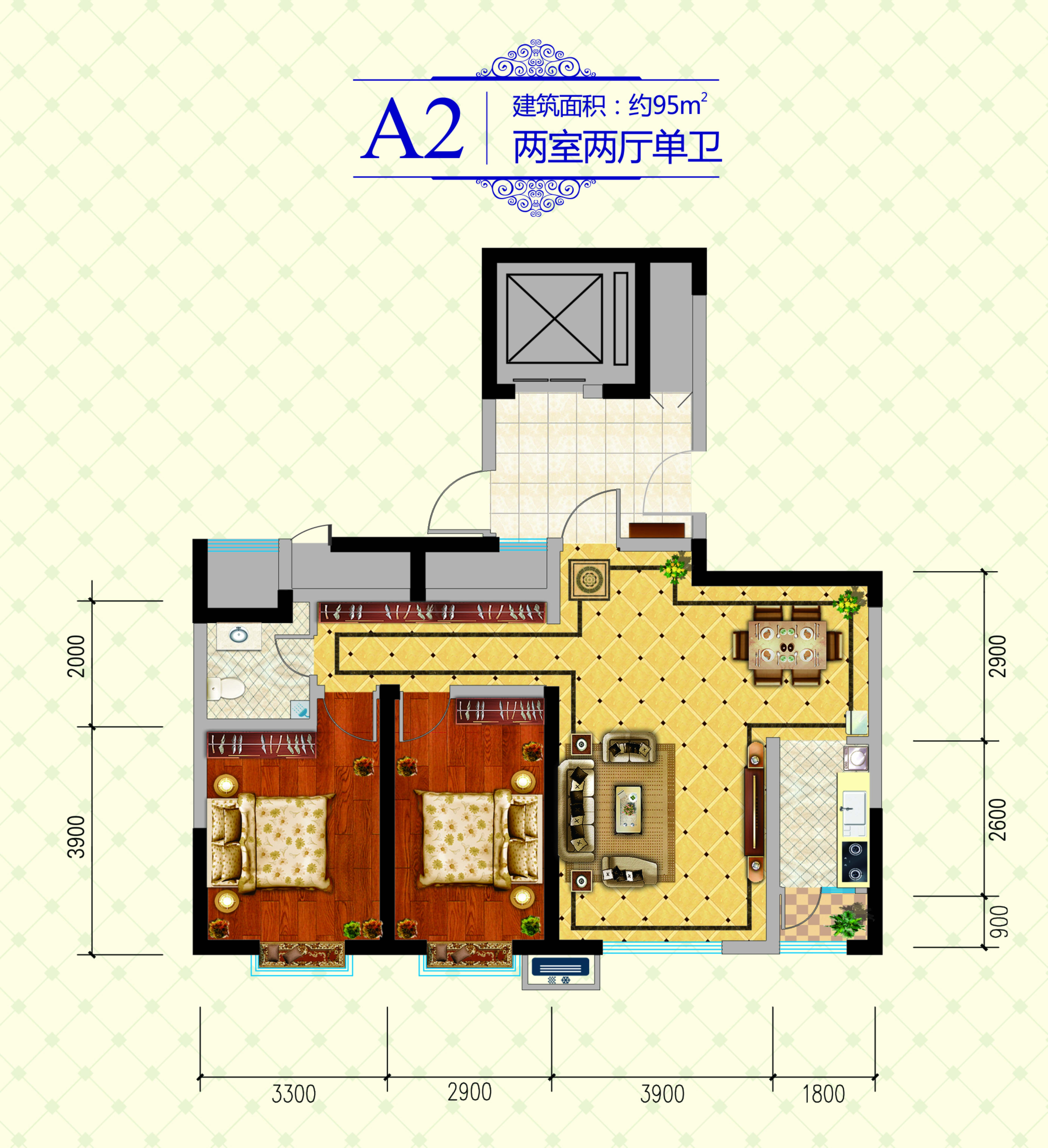 2室2厅1卫-A2户型 95㎡
