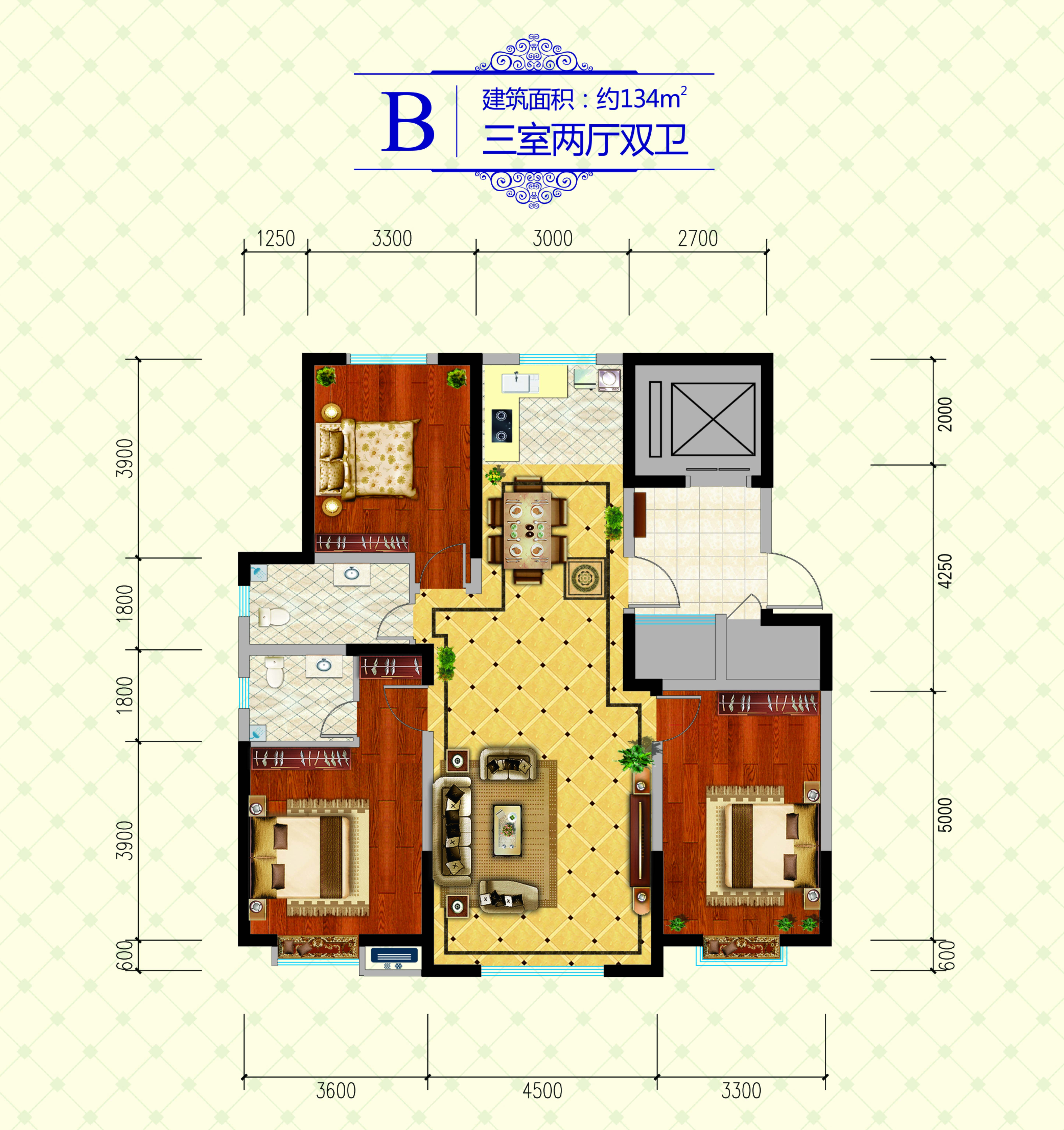 3室2厅2卫-B户型 134㎡