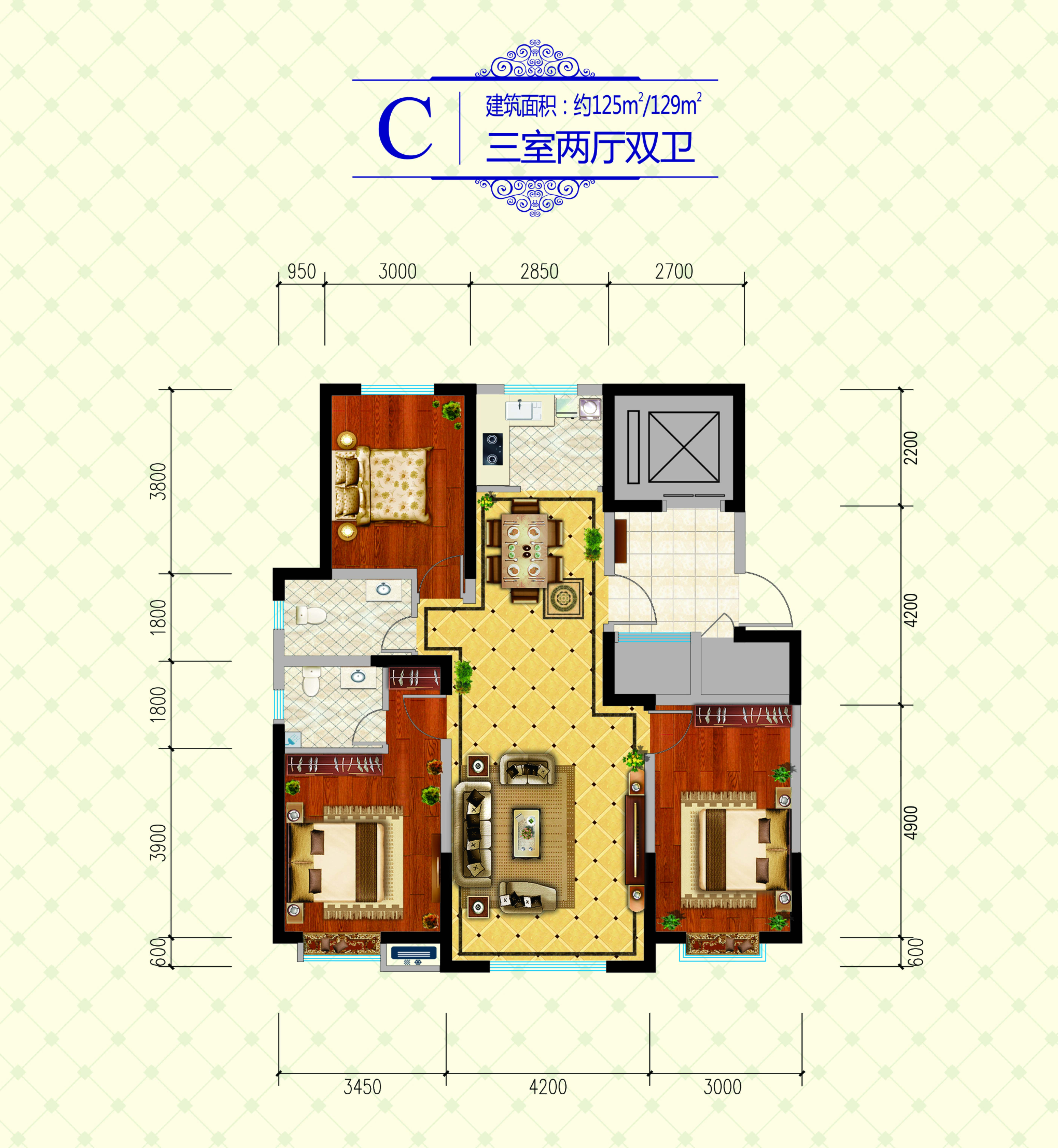 3室2厅2卫-C户型 125㎡