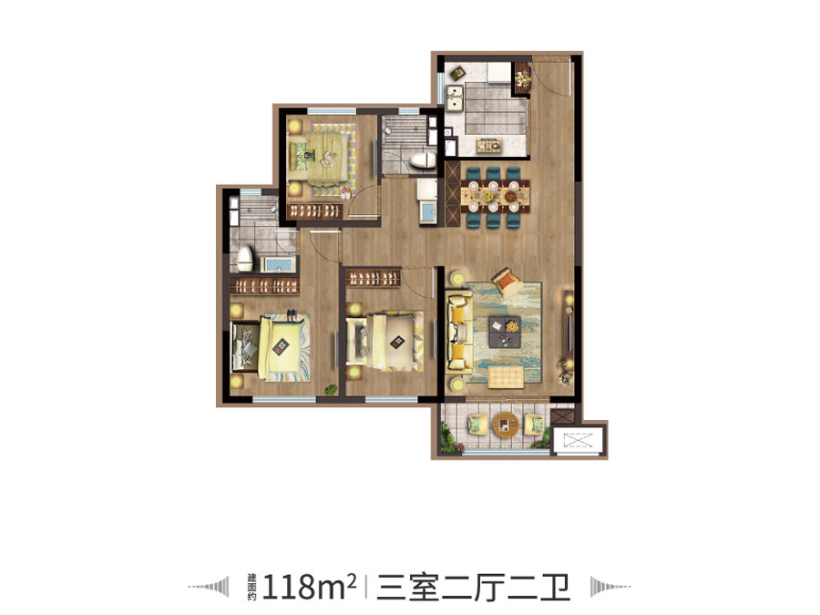 3室2厅2卫-建面118㎡三室