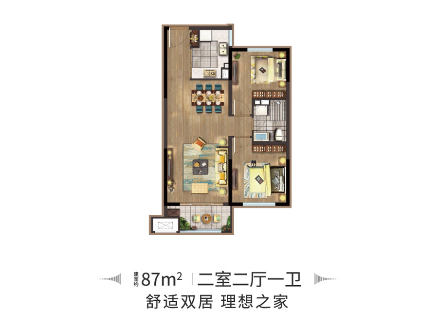 2室2厅1卫-建面87㎡两室