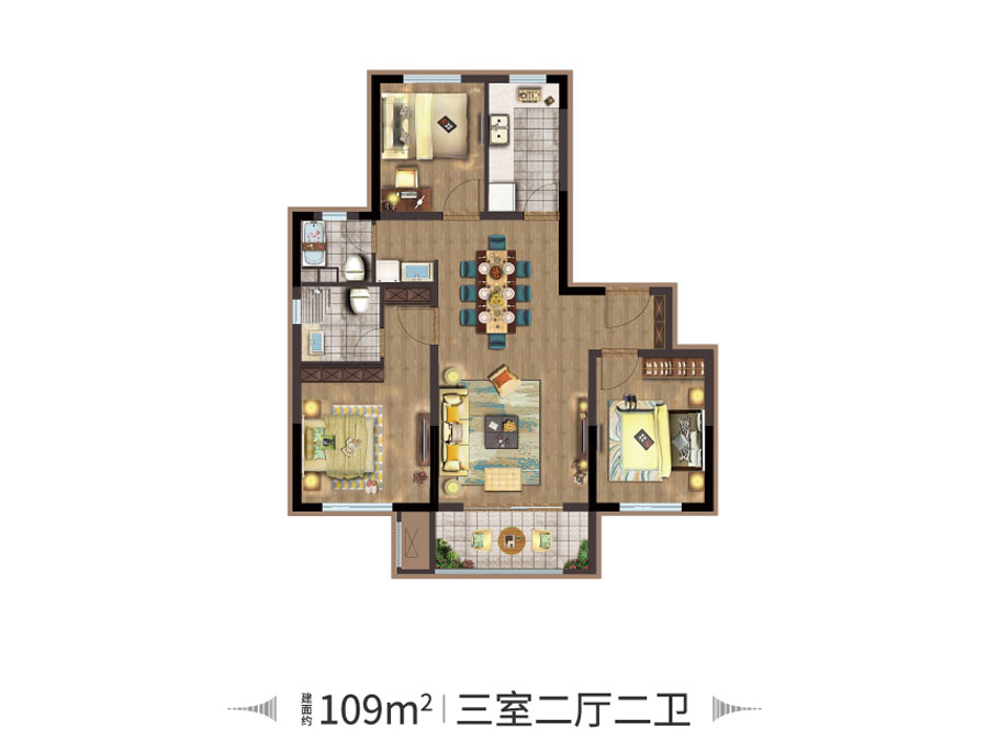 3室2厅2卫-建面109㎡三室