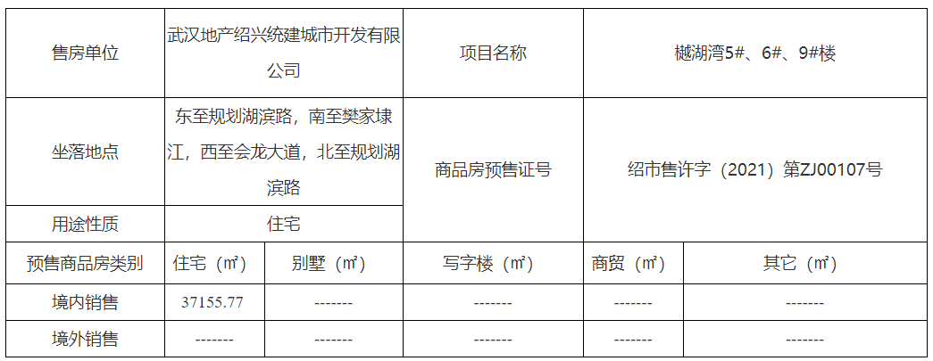 - 绍市售许字(2021)第ZJ00107号 详情发证时间 2021-04-26绑定楼栋5#、6#、9#楼证件照片