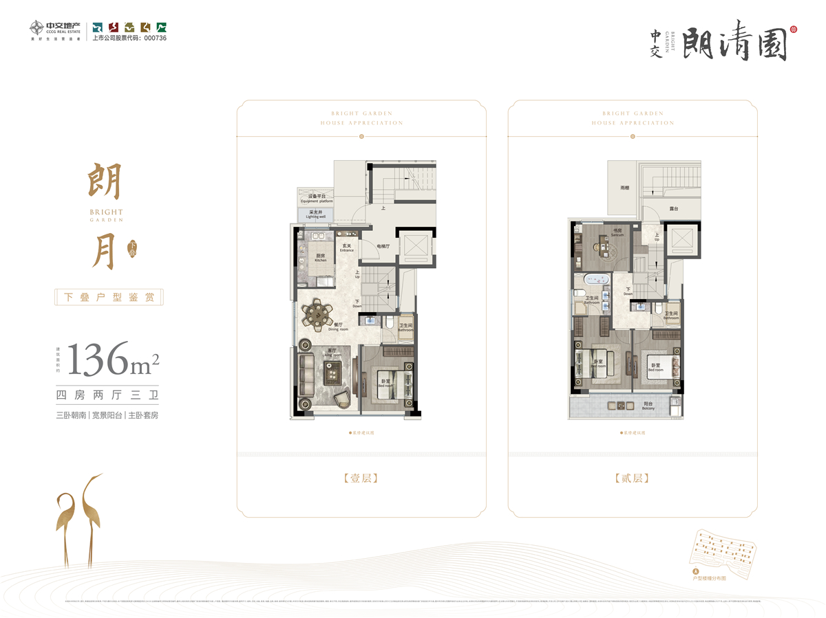 4室2厅3卫-建面约136平下叠四室两厅三卫