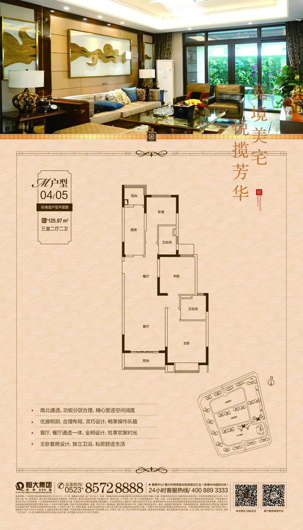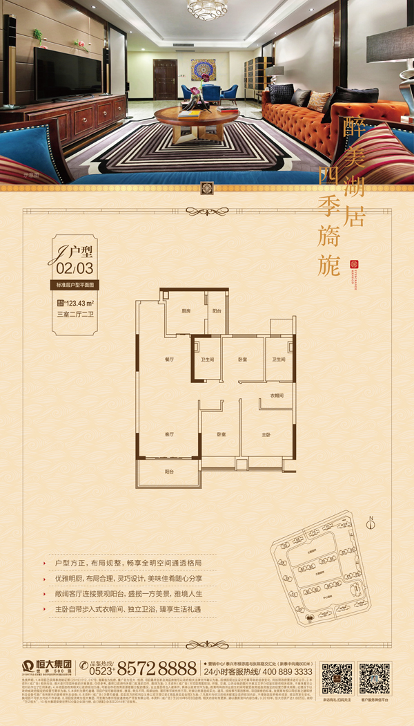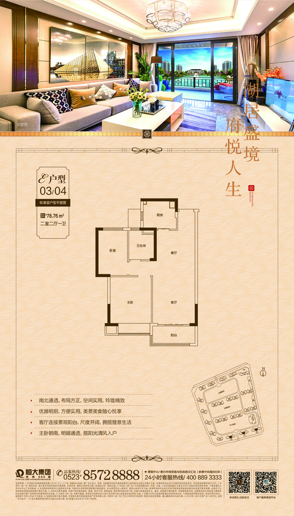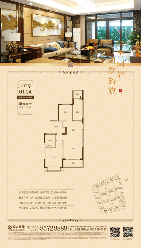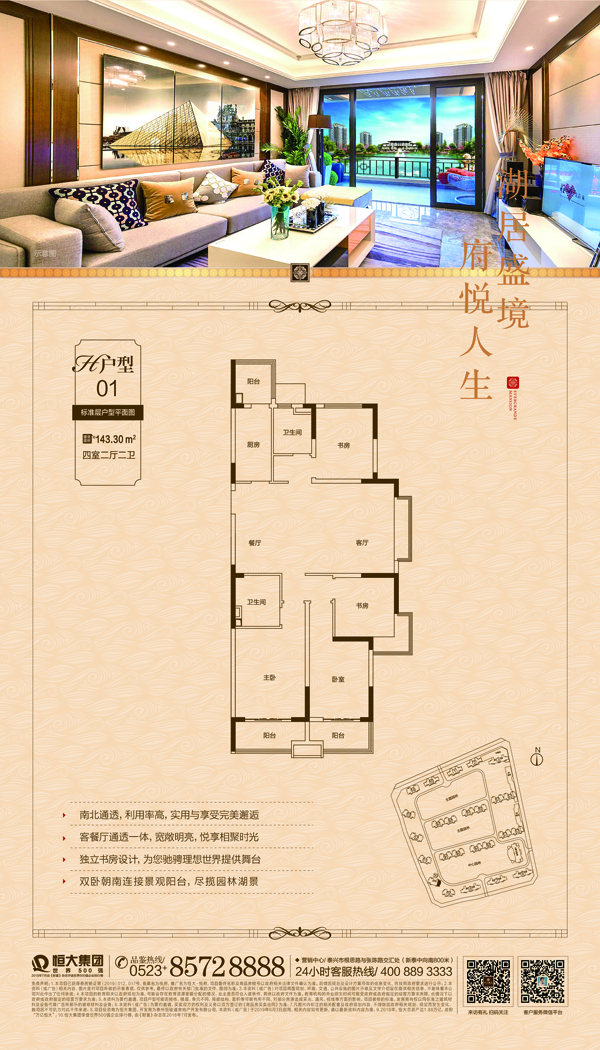 恒大地产集团在中国280多个城市拥有项目800多个,与全球800多家知名企业战略合作,实施精品战略,打造高品质、高性价比产品,开创行业“全精装修交楼”和“无理由退房”先河。泰兴恒大悦府,正踞北城,坐拥银泰、吾悦两大商圈,近振宇幼儿园、振宇外国语学校、泰兴中学等名校资源,毗邻泰兴公园、如泰运河等自然观光带。6000余条精工装修工艺标准,打造多类型住宅、多元化户型,满足不同消费群体需求。百米楼间距,阳光住宅,9300㎡中央湖景,100000㎡七重景观园林,含恒温泳池、西餐厅、红酒雪茄吧、健身房等2410㎡铂金会所,超10000㎡风情商业街,打造精致生活。国家一级资质金碧物业更为生活保驾护航!