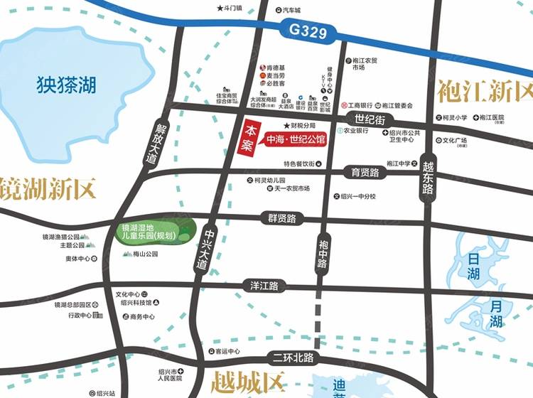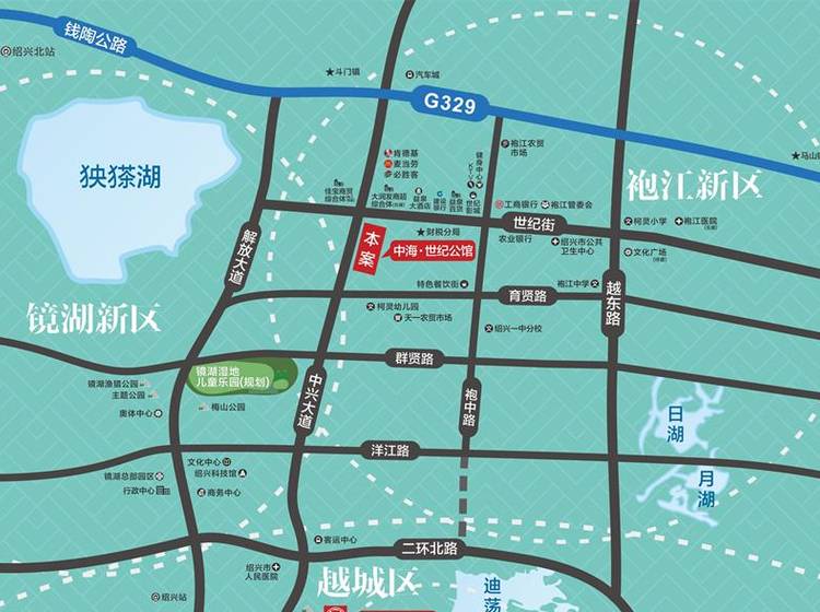 中海世纪公馆是中海地产进驻绍兴的排名前列项目,项目位于浙江省绍兴市袍江新区,东侧为昌明街、西侧为菖蒲街、北侧为世纪街、南侧为育贤路。总占地129亩,总建筑面积约23万平方米,户数约1500户,产品含括了多层、小高层、高层、沿街商铺以及办公楼等多种物业形态。