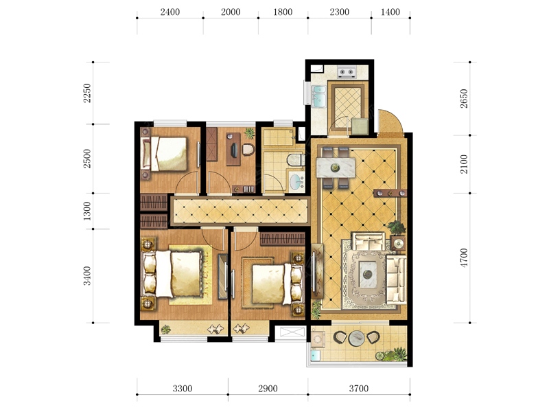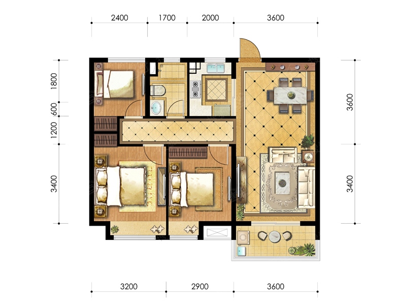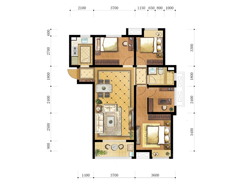 3室2厅2卫-5#、7#、10#楼88㎡A1户型