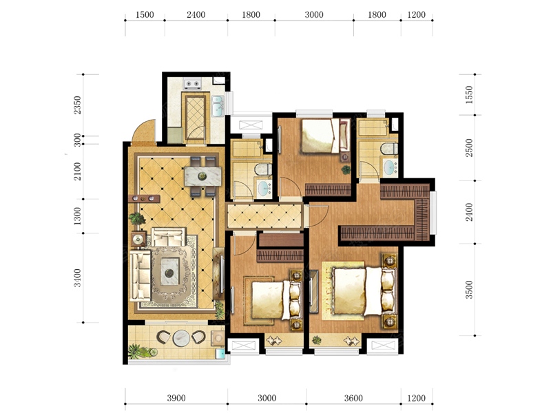 3室2厅2卫-3#、6#、9#楼112㎡C3户型