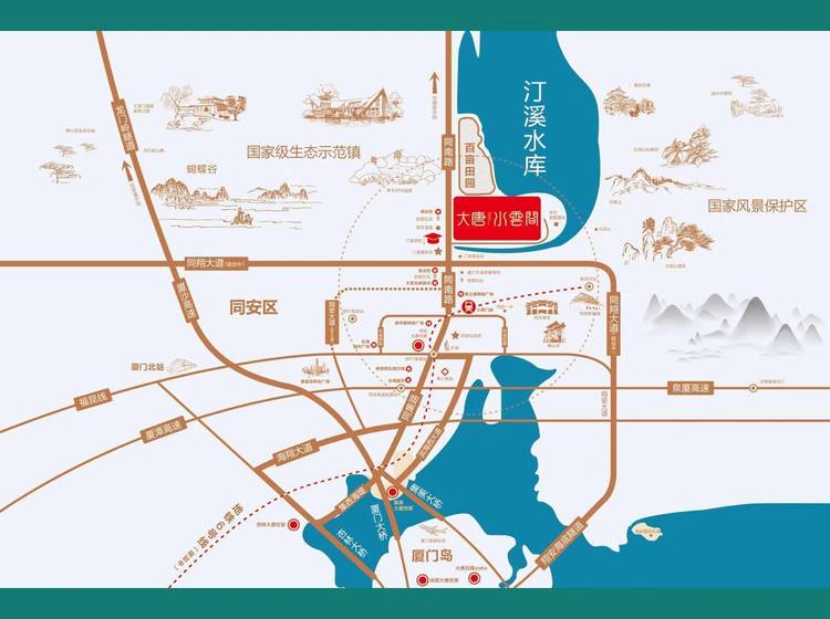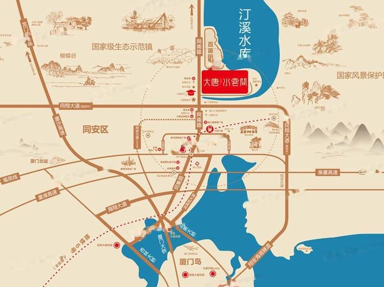 大唐水云间定位为“湖山大境,诗意厦门”,规划6栋无遮挡墅景高层产品,一字排开,坐北朝南,依山傍湖,揽万千湖山盛境,拥百亩诗意田园。 大唐地产以是32载筑城经验,布局于14省20市60余城,以海西9盘同辉的磅礴气势,大匠营城,再筑厦门新中式诗意之作--大唐水云间。 大唐水云间,打造智慧生活住区、全龄段山水园林、环氧运动跑道,约80-120㎡的百变户型,以东方意境雕刻生活细节,诗意栖居尽得人生真趣。