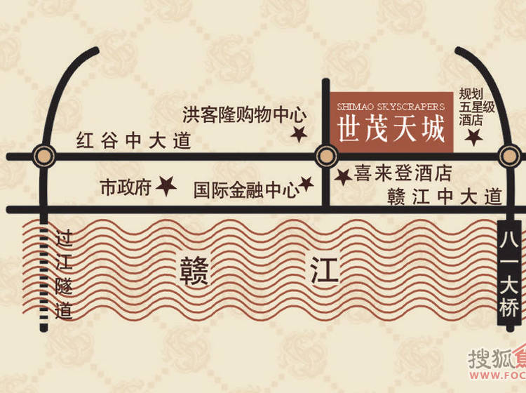 世茂天城集高档住宅、大型商业、办公写字楼、公寓及配套商业为一体的综合性商住社区。由红谷滩C-15、D3、D5三个地块组成,东面为50米宽景观大道红谷中大道、地铁二号线地铁站,南面为囊括洪客隆百货及商业步行街的红谷滩商业中心,紧邻项目东北面为八一大桥。C-15地块位于红谷滩商业中心位置,6层大型综合商业将引进大型超市、精品店、餐饮、KTV、影院等综合商业娱乐项目,15层星级写字楼亦将丰富整个商区的整体功能。D-3和D-5地块将规划建设9栋20-54层的高层住宅、7栋2-3层的居住配套商业、1栋20层办公楼,其中9栋高层住宅布局由高到低,居高临下,通过高度及角度的变化可让住户观赏到赣江美景。