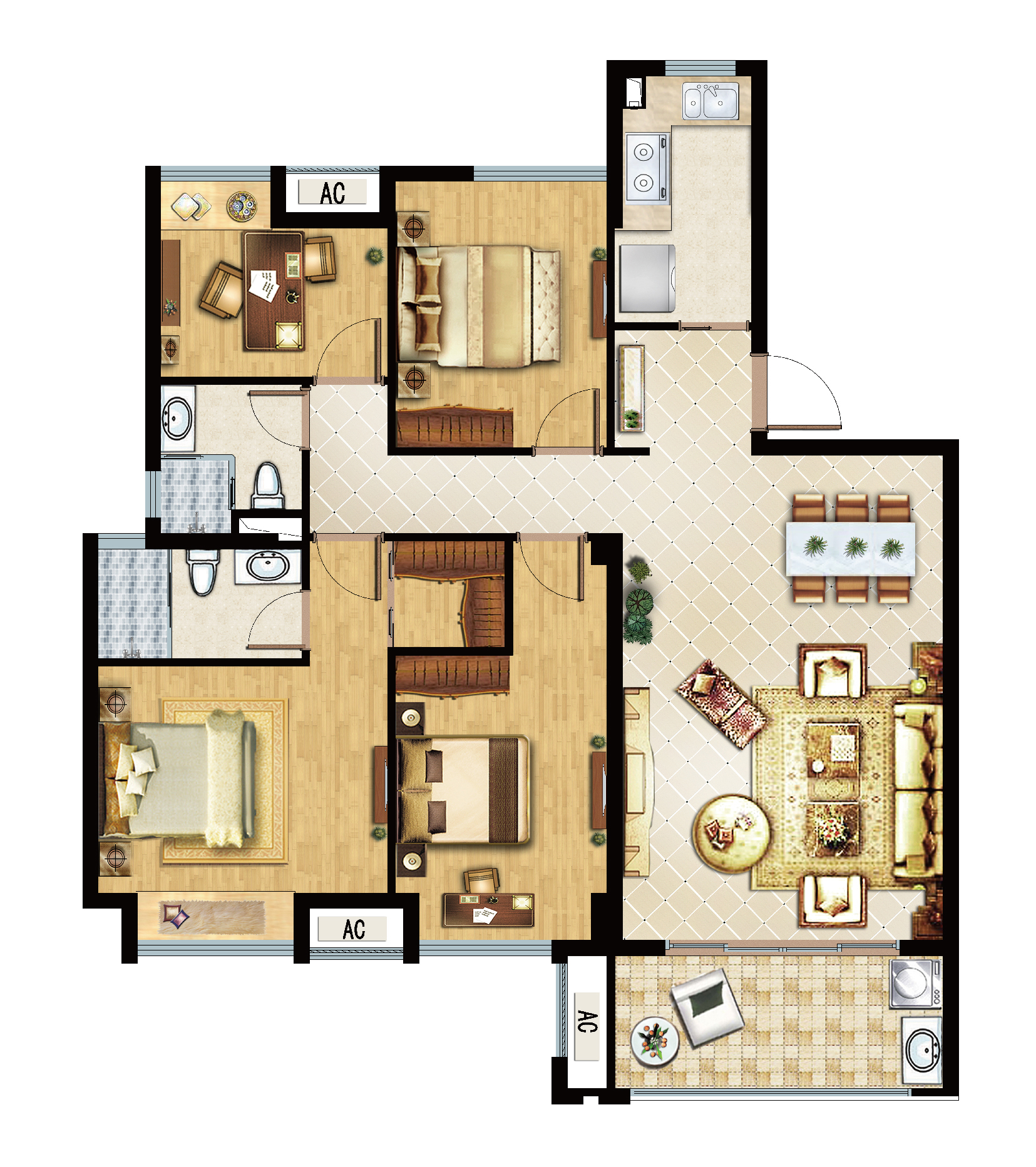 4室2厅2卫-115㎡户型