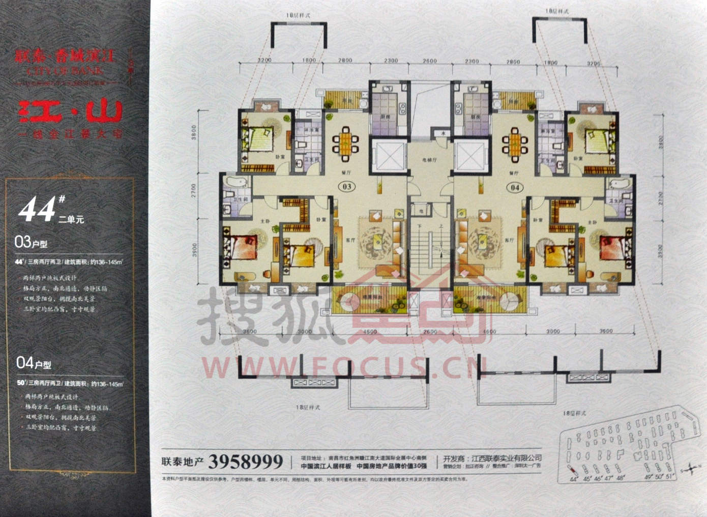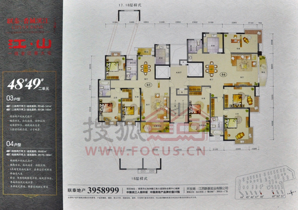 联泰香域滨江“桥郡”位于南昌市红角洲丰和南大道1555号,南航路于丰和大道交汇处,总占地138亩,建筑规模约23万平米,容积率1.8,绿地率≥40%,建筑密度≤25%。规划有住宅、商业等物业形态。其中住宅约15万平米,商业面积9671㎡。以高层、小高层为主,户型有两房、小三房、大三房、四房等。