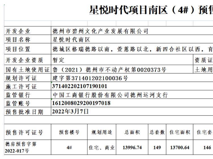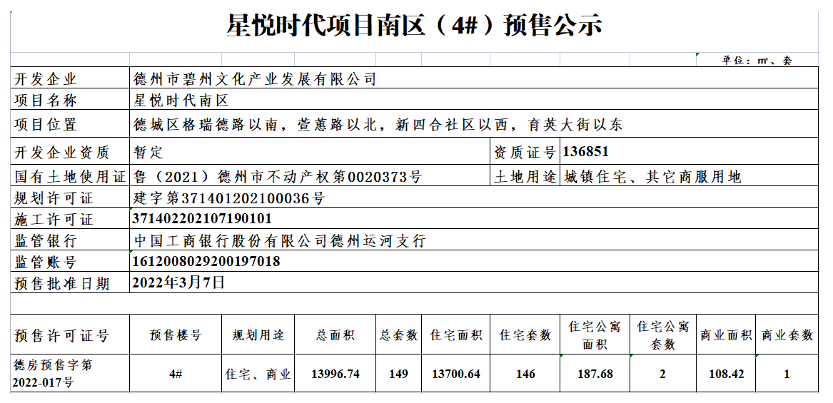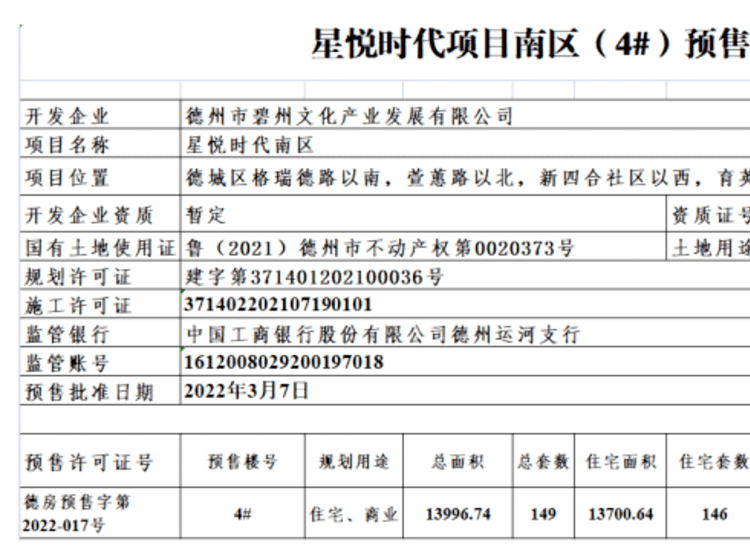 - 德房预售字第2022-029号 详情发证时间 2022-03-07绑定楼栋南区(4#)证件照片