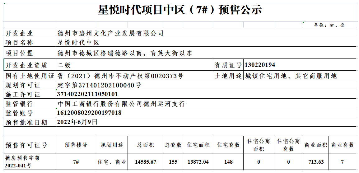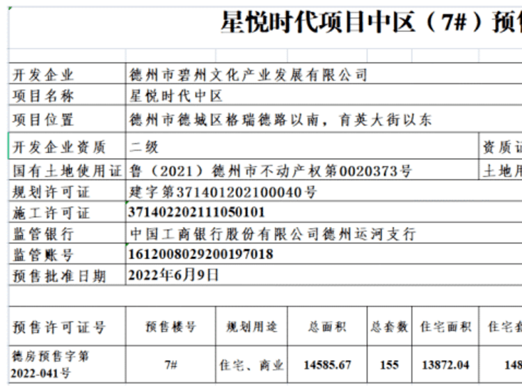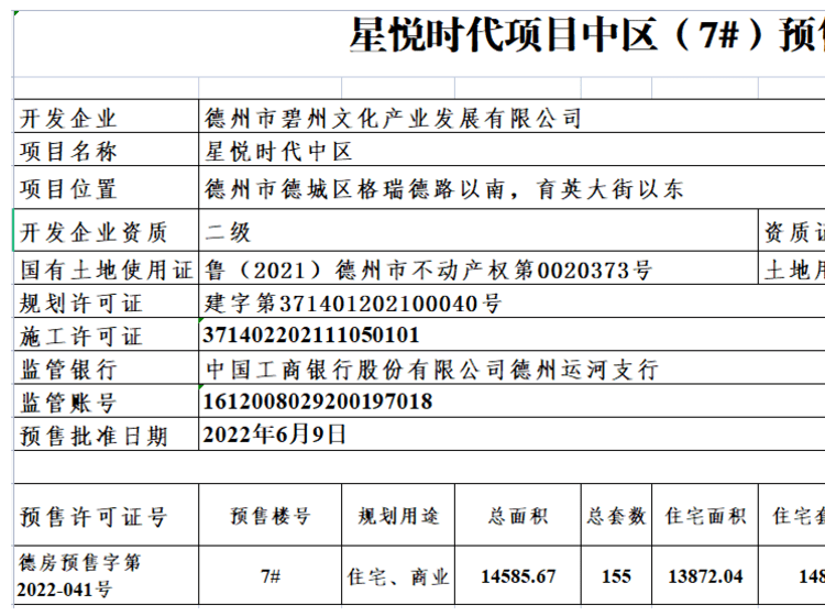 - 德房预售字第2022-041号 详情发证时间 2022-06-09绑定楼栋中区(7#)证件照片