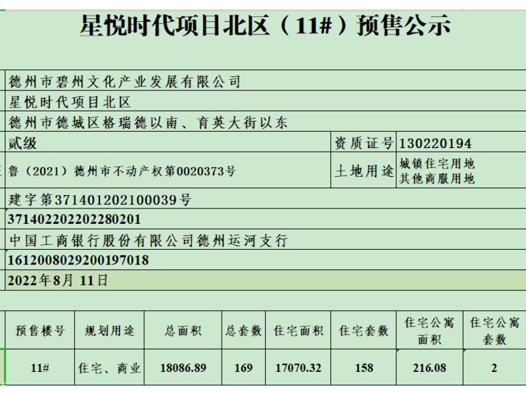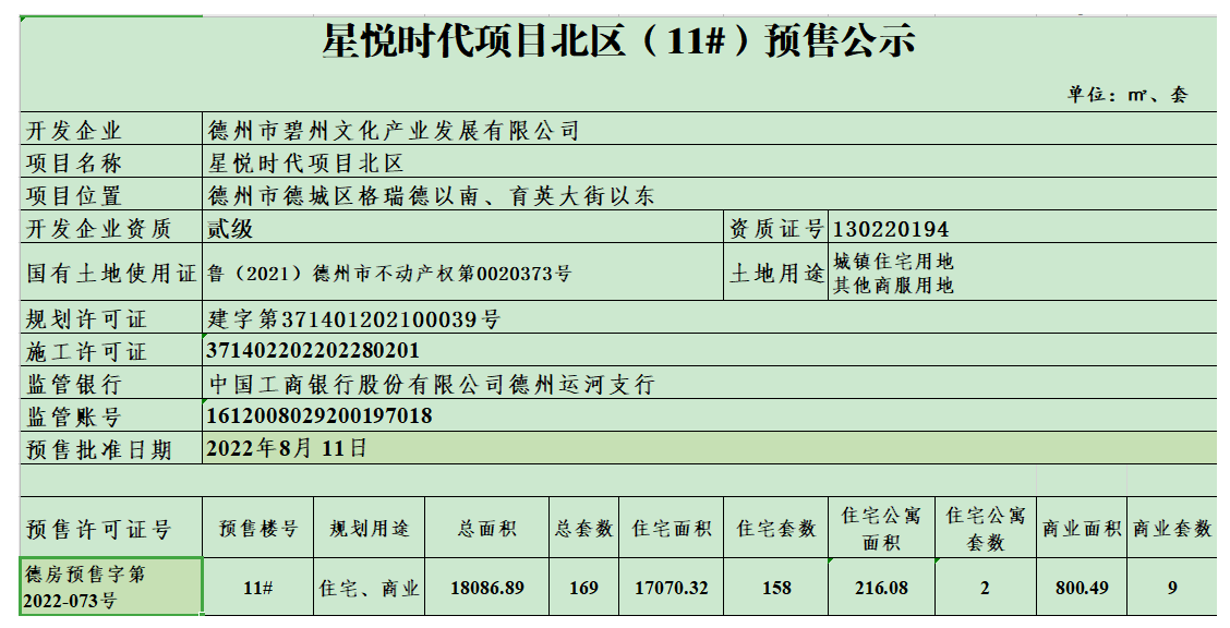 - 德房预售字第2022-73号 详情发证时间 2022-08-11绑定楼栋北区(11#)证件照片
