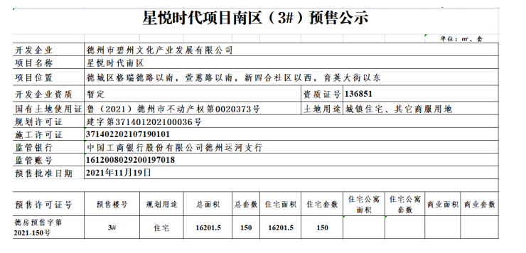 - 德房预售字第2021-150号 详情发证时间 2021-11-09绑定楼栋南区(3#)证件照片