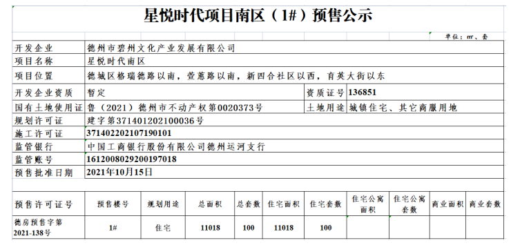 - 德房预售字第2021-135号 详情发证时间 2021-10-08绑定楼栋南区(2#)证件照片