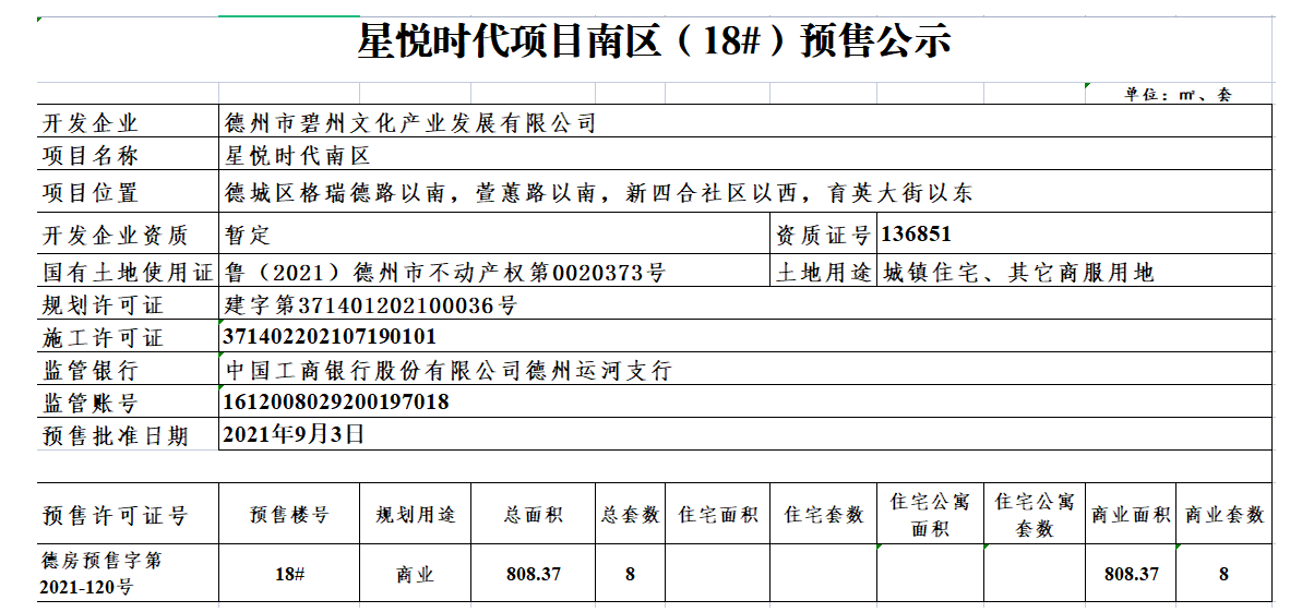 - 德房预售字第2021-120号 详情发证时间 2021-09-03绑定楼栋南区(18#)证件照片