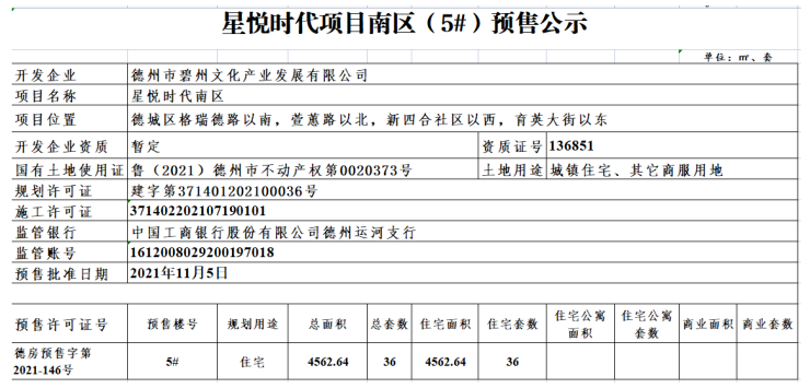 - 德房预售字第2021-146号 详情发证时间 2021-12-05绑定楼栋南区(5#)证件照片