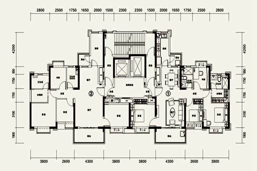 4室2厅2卫-8#2单元户型