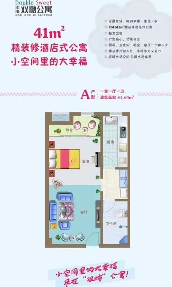 41-62㎡非毛坯酒店式公寓,全装修拎包入住,省时省力又省心,低总价、低首付,房租抵月供,小空间里的大幸福,尽在“双糖”公寓!