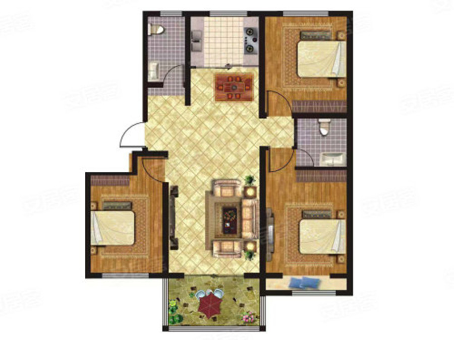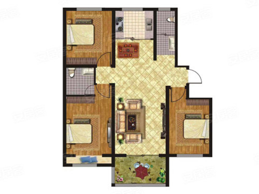 3室2厅1卫-B户型