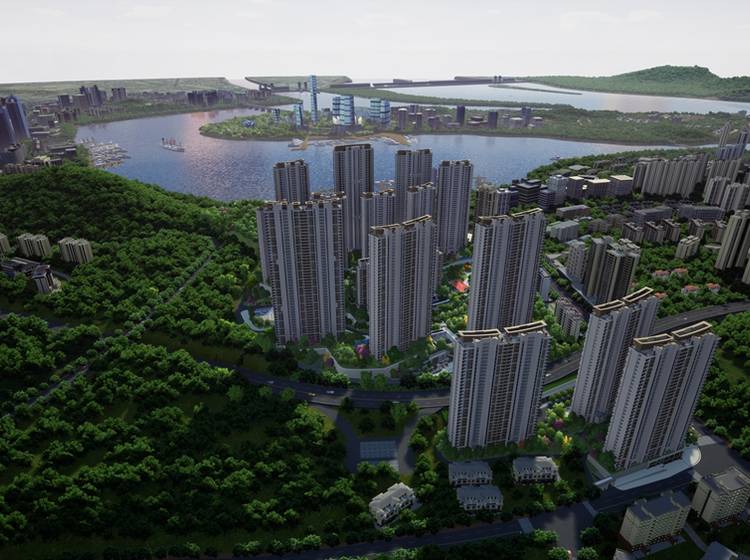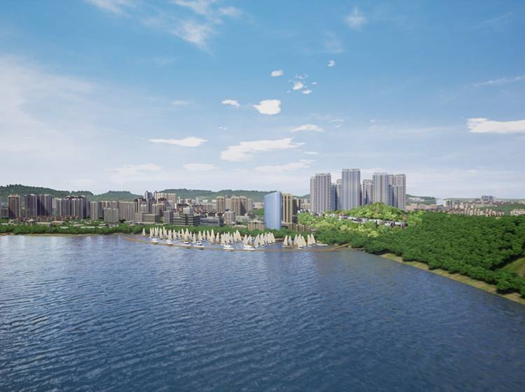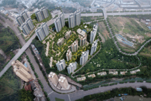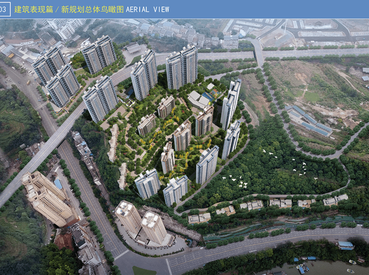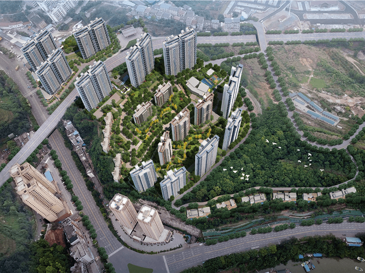 项目在规划之初,因地制宜,充分考虑到周边自然资源、景观资源、地貌地形,整体建筑形态为顺应地形布置,占山瞰江,内部保留了原生态的植被,打造了原生态的山体公园,达到对自然景观保护性改造的目的,在高层组团内部空间通过设置集中绿地,儿童游乐园,生态广场来营造绿色健康,开放共享的生态社区。
