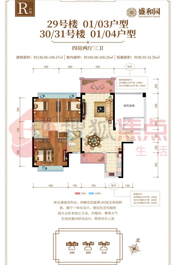 4室2厅3卫-29#1、3户型,30/31#2、4户型
