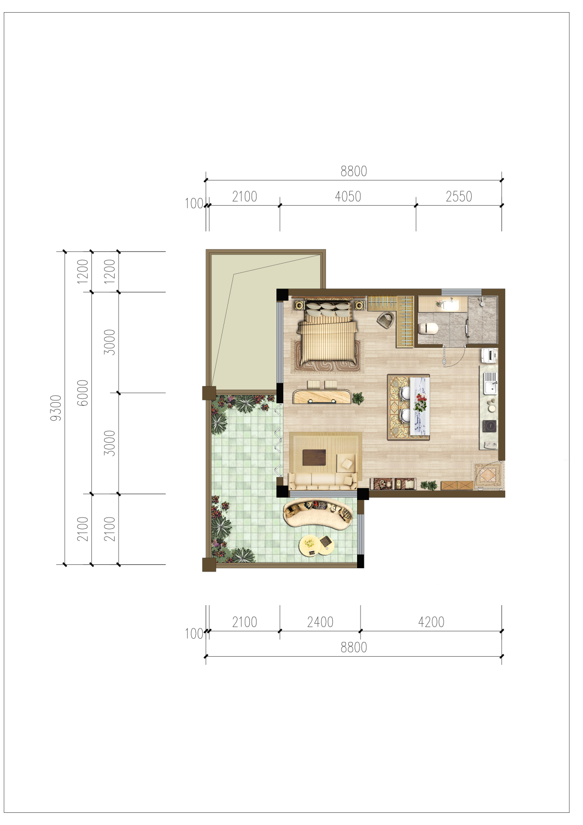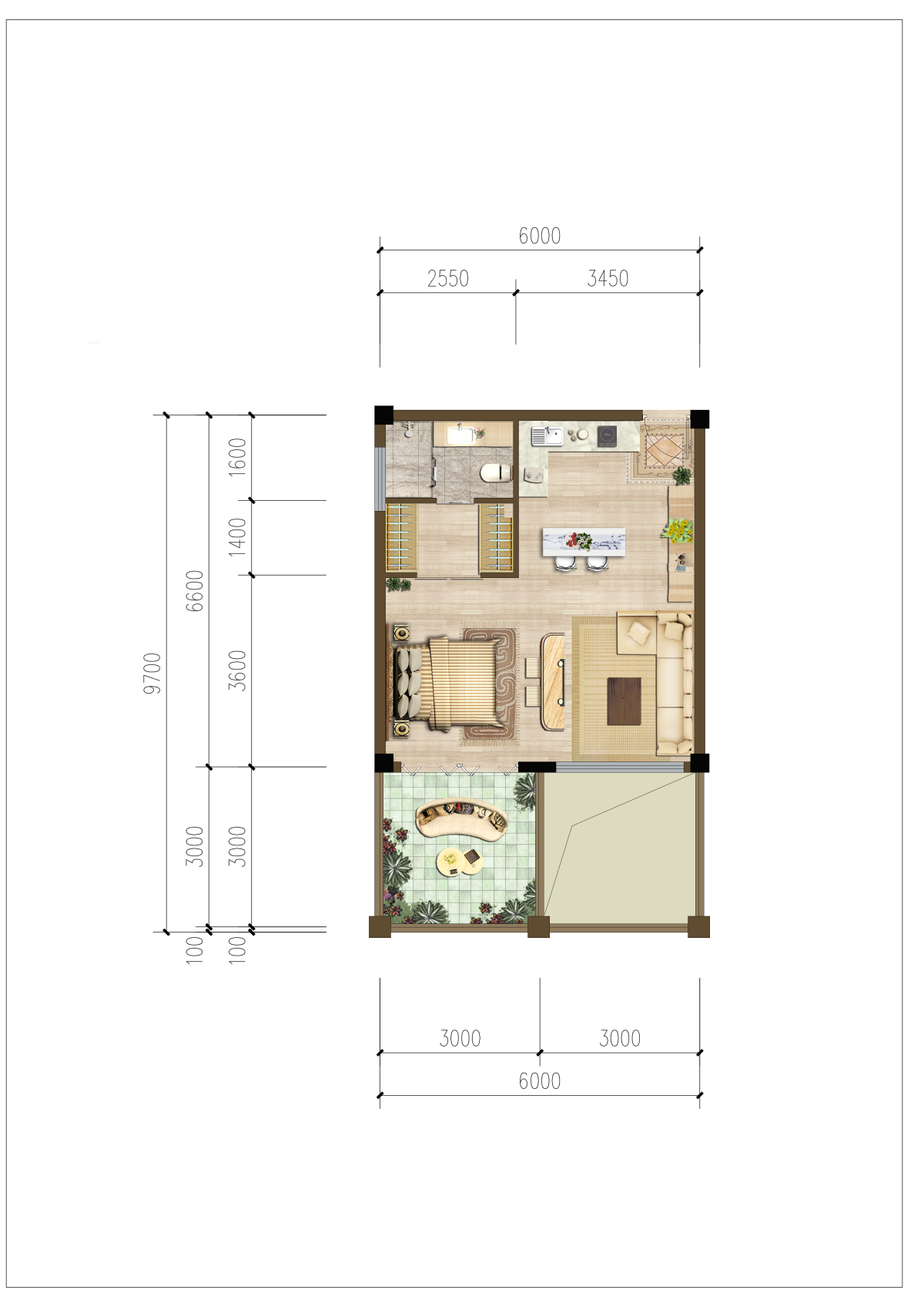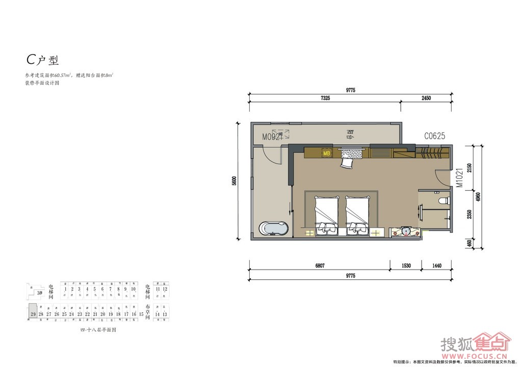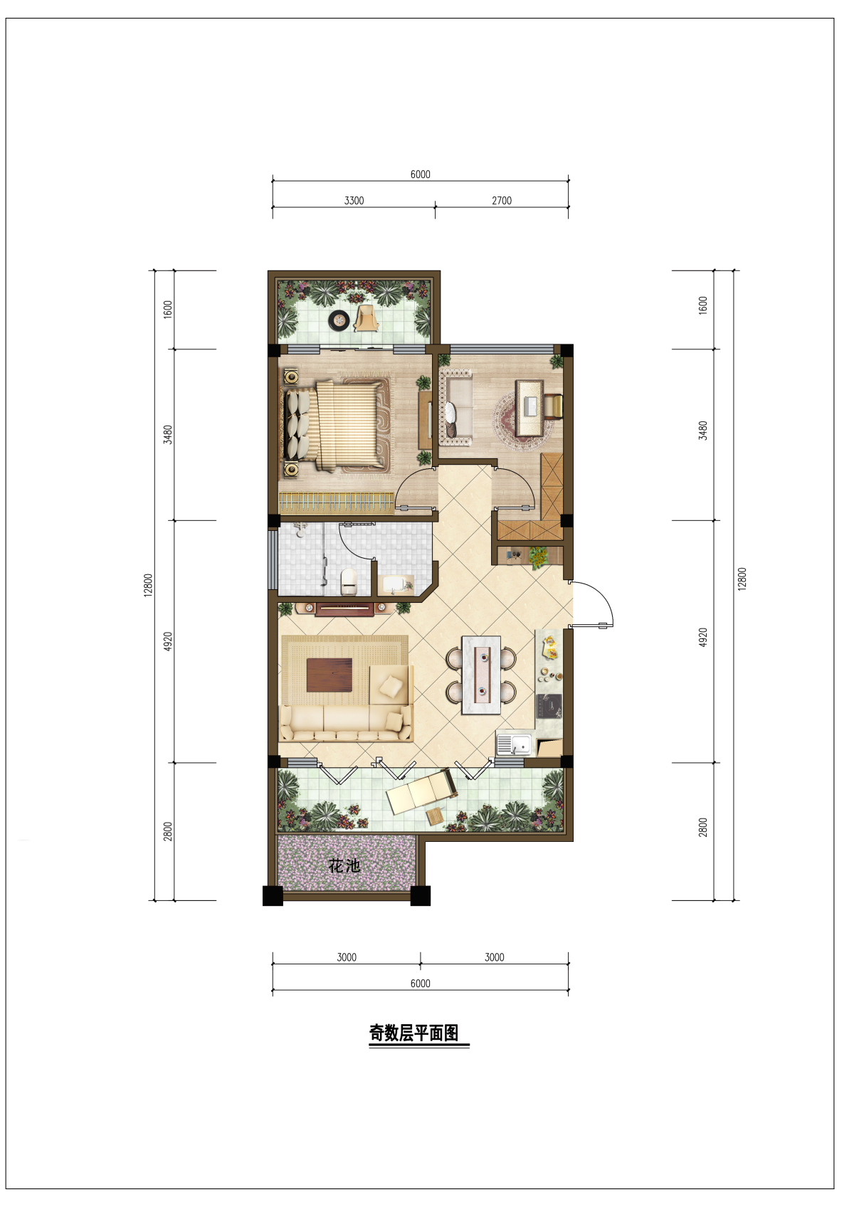 2室2厅1卫-悦湖洋房F2户型-奇数层