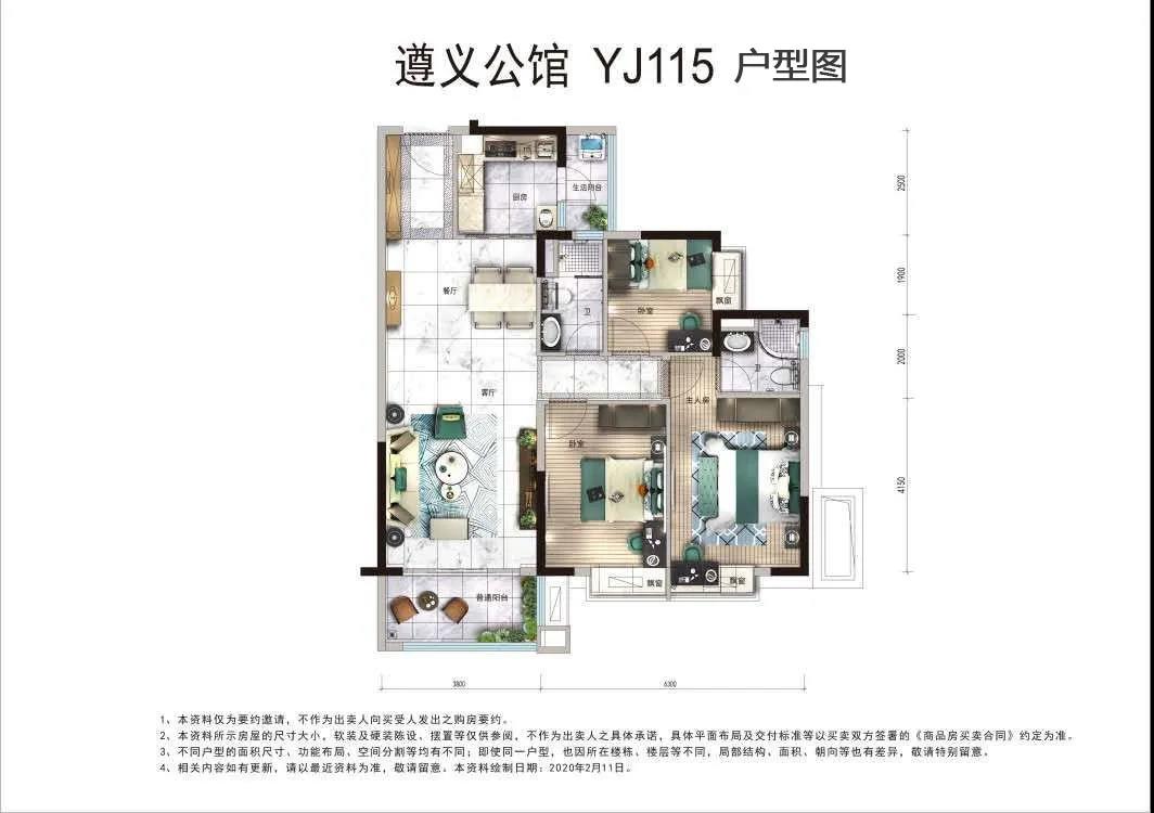 3室2厅2卫-YJ115㎡户型