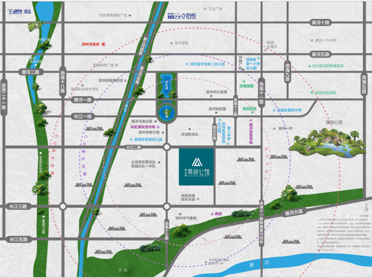 项目北临长江二路,东侧为阳光东路,出行便捷又不会有过多的车辆通行带来的扬尘与噪音纷扰。项目南侧的长江三路,为城市主干道,双向六车道设计,交通出行十分便利。渤海十一路黄河四桥正在建设当中,通车之后,将快速连通主城区与南部高新区、博兴县,便捷的交通代表着城市发展的方向,未来的交通价值不可限量。