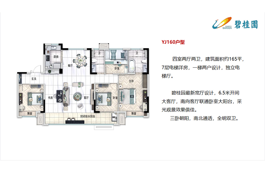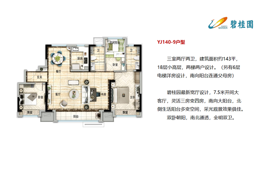 项目采用了碧桂园的“府”系产品,建筑立面采用新亚洲风设计手法,追求现代、经典、永恒的视觉形象,展现了浓郁的时代特色和人文气息。项目整体采用围合式布局,通过建筑、道路、景观等元素的组合,融合为一个有机整体。碧桂园坚持“以人为本”的设计理念,强调人与环境的和谐共生,合理设计户型、环境与配套设施的空间组合,打造处处见绿,户户有景的“全景社区”。
