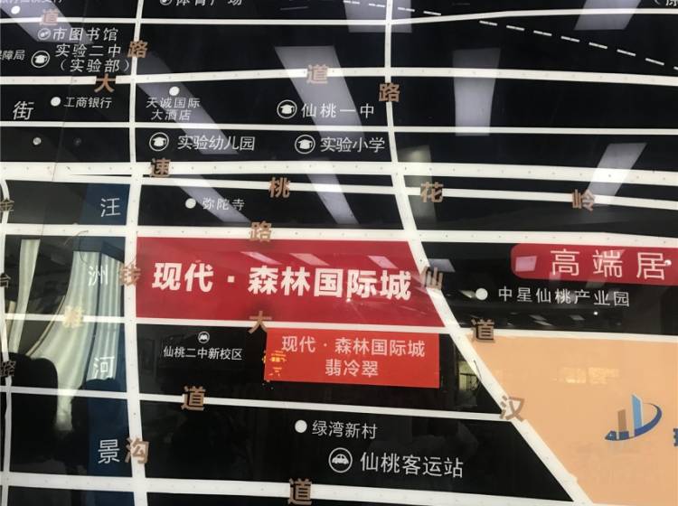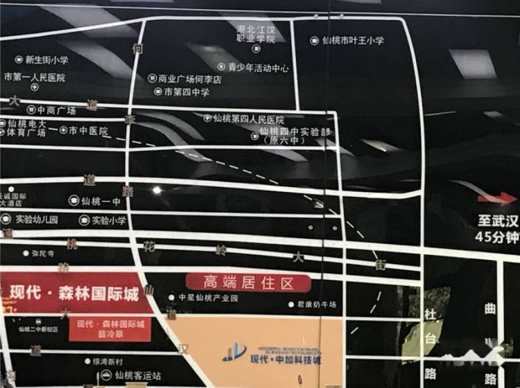 "现代·森林国际城位于仙桃仙汉公路与朝阳路交汇处,北面是仙桃刘口美食街,西侧紧靠仙桃重点景观工程汪洲河景观带与钱沟路,也是未来南城主 要景观大道,东面紧靠仙汉公路城市主干道,交通极为便利。借助仙桃城南新区门户地段的核心 ,现代·森林国际城将着力打造为一个集科技、环保、健康于一体的大型综合体项目