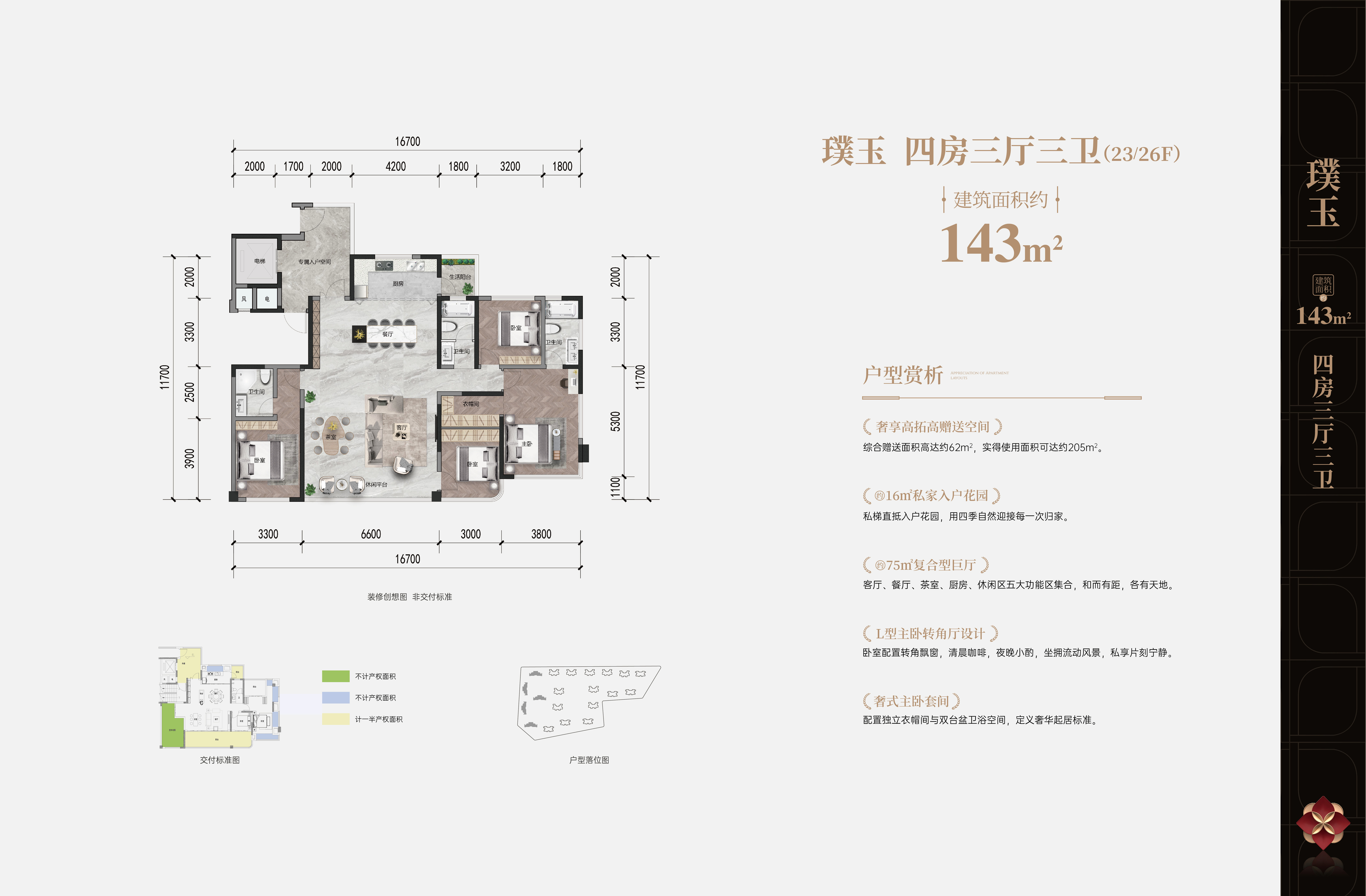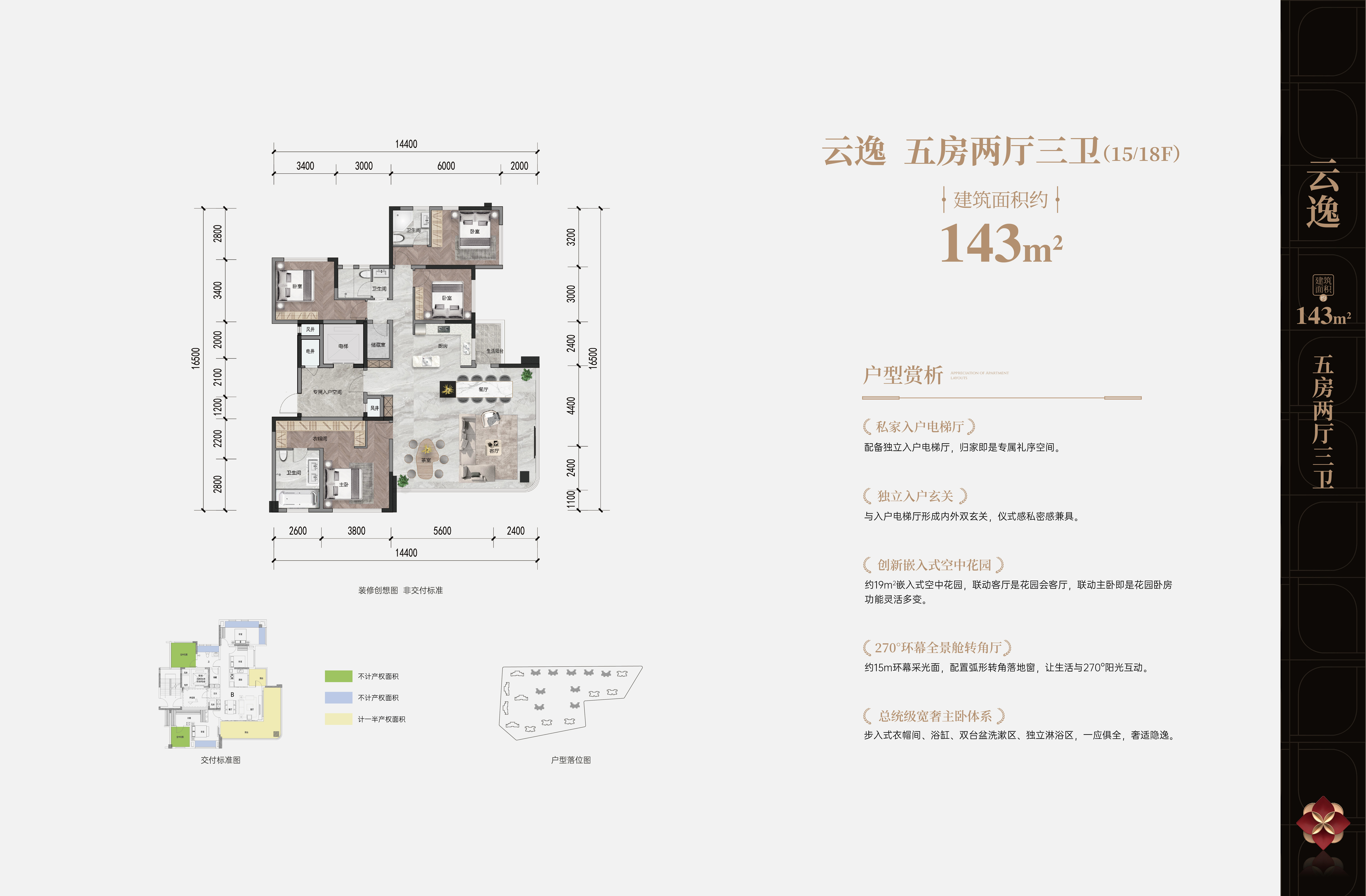 户型主打143㎡和136㎡,采用一梯一户设计,实现高赠送面积、270°环幕视野与嵌入式花园,融合客餐厨一体化布局,兼顾舒适与功能性。物业由绿城服务提供国家一级标准服务,确保高品质居住体验。