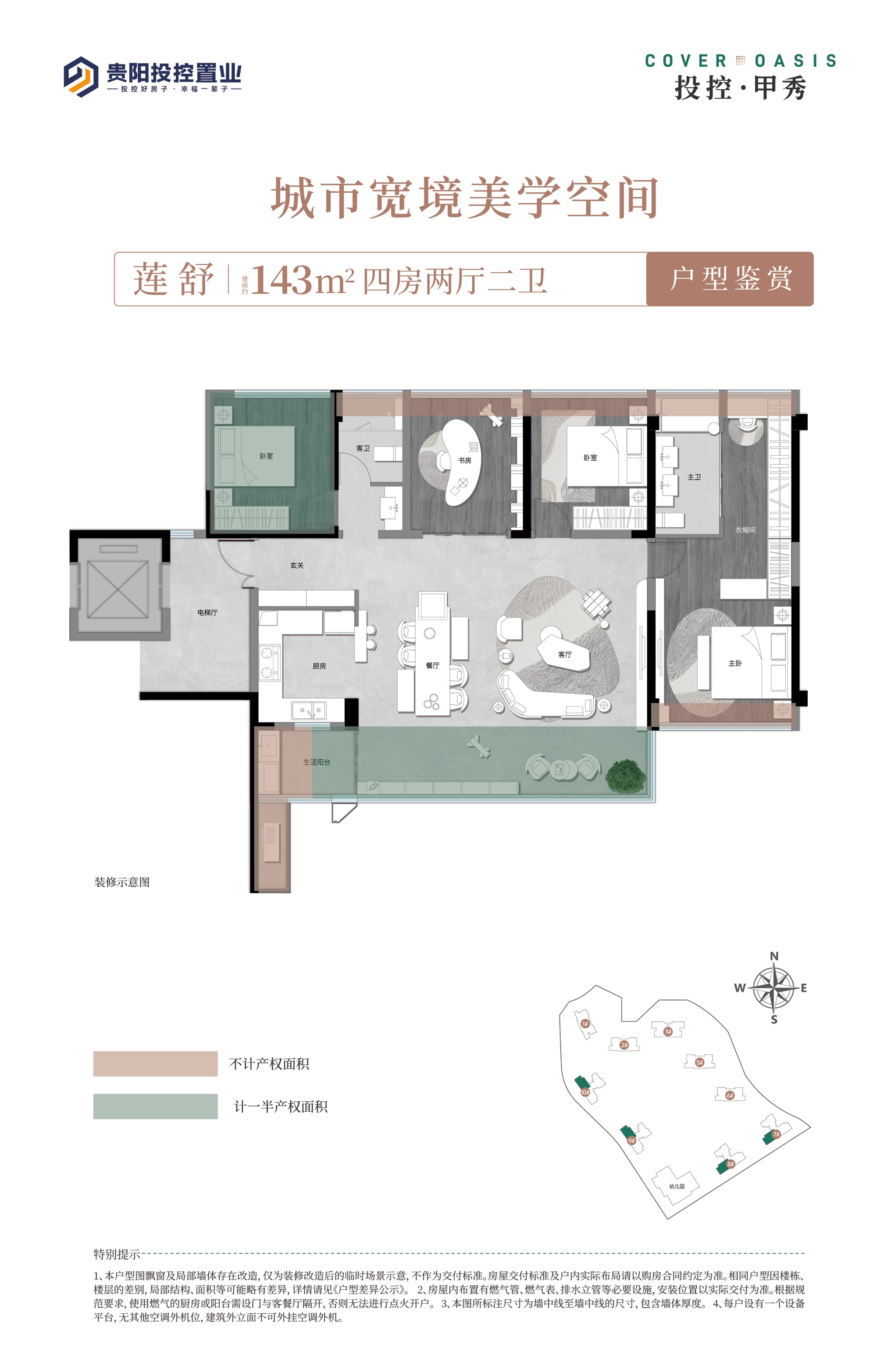 投控·甲秀由本土国企贵阳投控置业打造,占位金融城核芯,省博物馆、图书馆旁,集政务、人文、生态、商业于一体,近地铁1号线,坐拥金融城、CC PARK等高端商圈,享养马湖一线湖景,东林公园与观山湖公园双公园环绕,全龄教育、优质医疗配套齐全。约143㎡-228㎡金融城芯滨湖隐奢豪宅。
