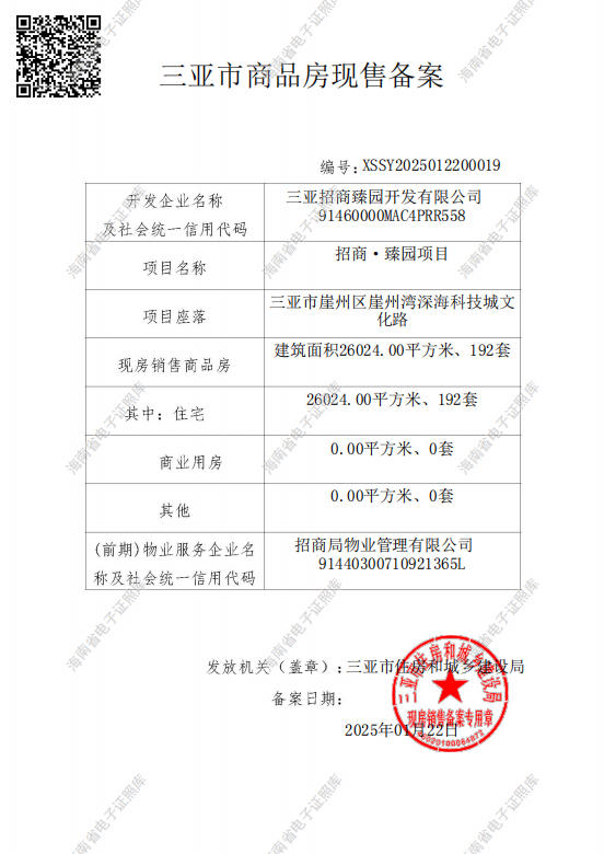 - XSSY2025012200019 详情发证时间 2025-01-22绑定楼栋建筑面积26024平方米、192套,其中(住宅):26024平方米、192套 ,商业用房:0.00平方米、0套, 其他:0.00平方米、0套。证件照片