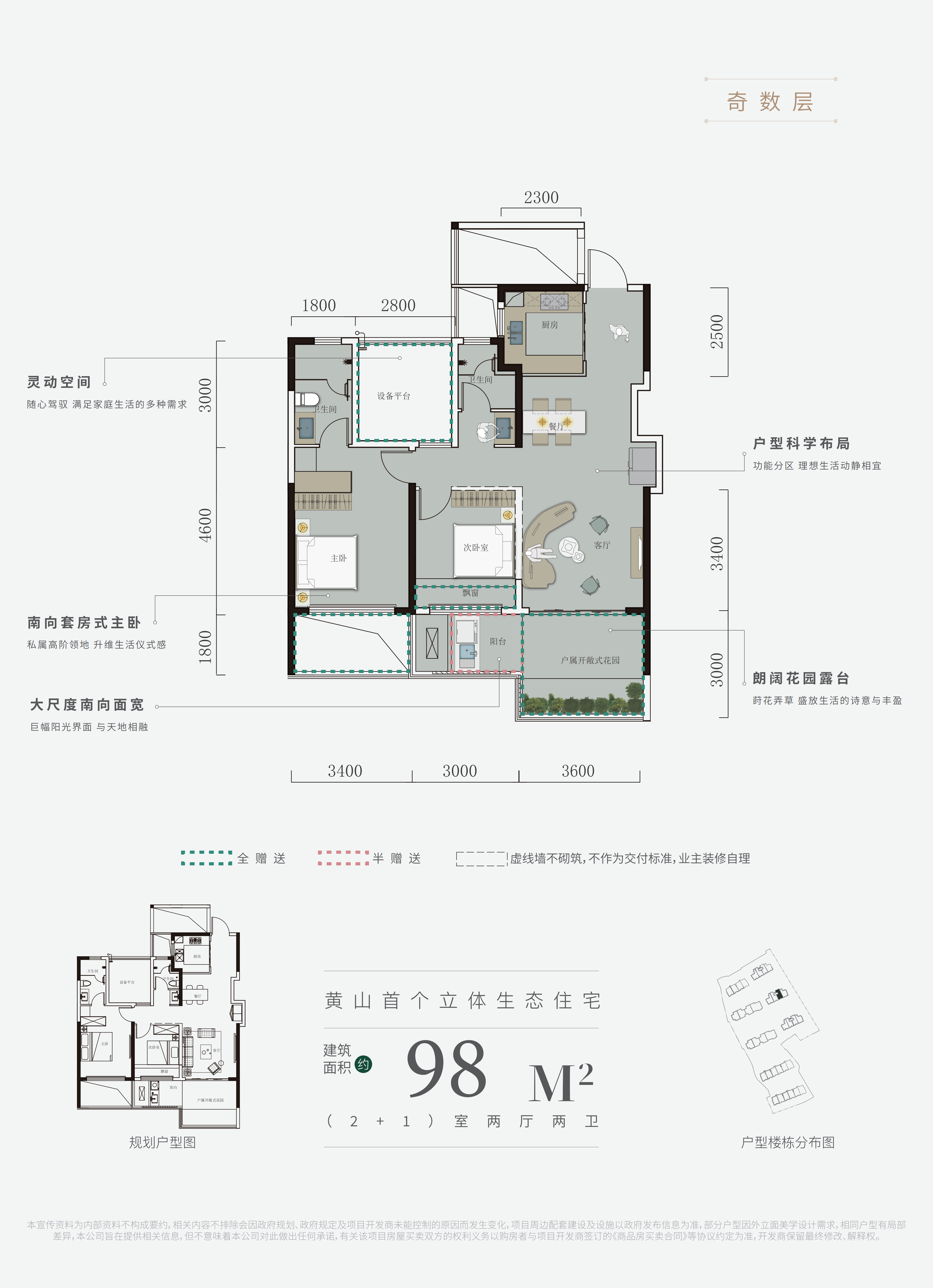 2室2厅2卫-98㎡ 2+1室两厅两卫