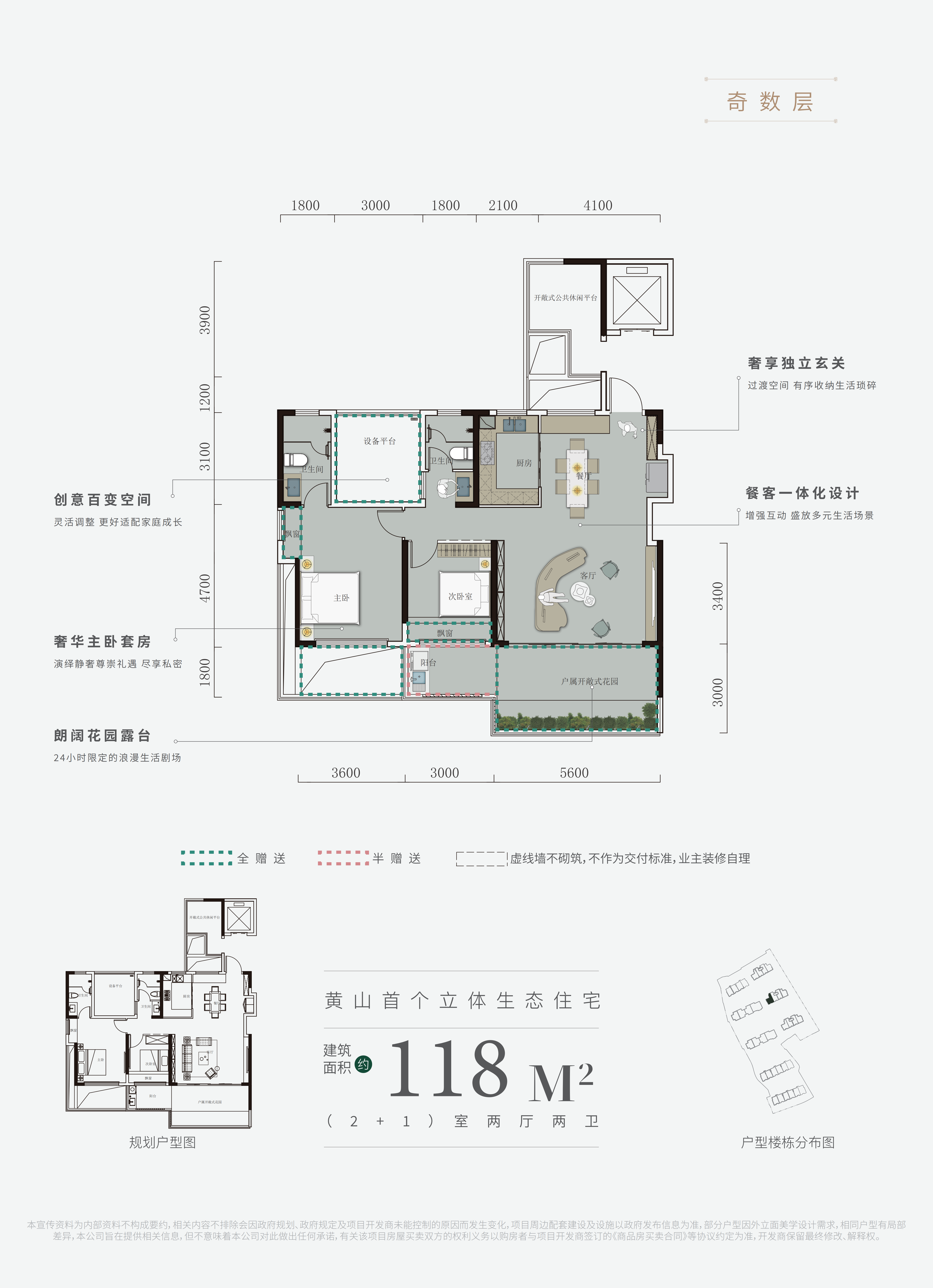 2室2厅2卫-118㎡ 2+1室两厅两卫