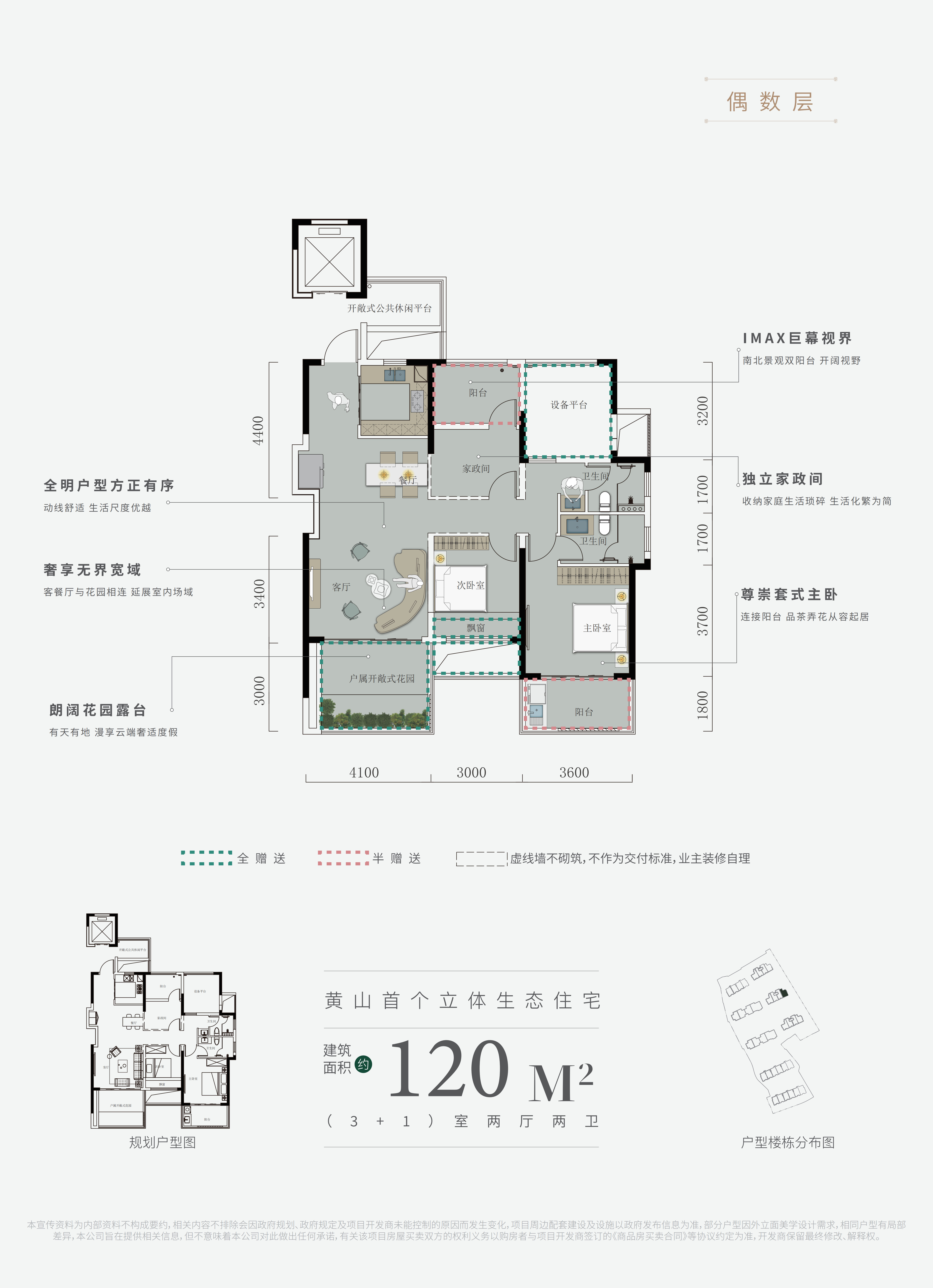 3室2厅2卫-120㎡ 3+1室两厅两卫