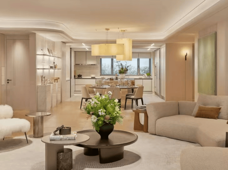 金陵华庭作为整个项目的住宅板块,延续了嘉里建设的豪宅基因。户型方面,首批次推出建筑面积约270-640m²天际大平层产品,标准层一层两户,户户端景,主佣分离设计,享有独门独户电梯厅。室内大面宽客厅与全景落地窗,拥有极致的城市地标景观。精装上,采用德国Poggenpohl博德宝、瑞士V-ZUG瑞族、意大利GESSI捷仕等百年品牌,成为上海豪宅市场的典范之作。