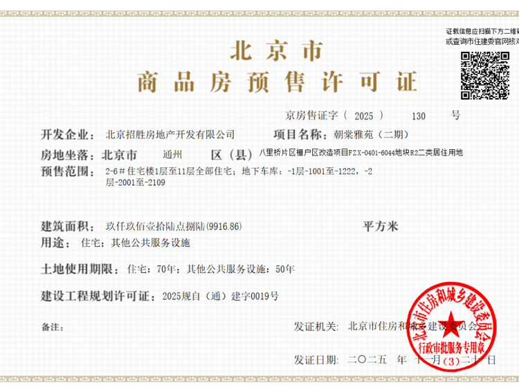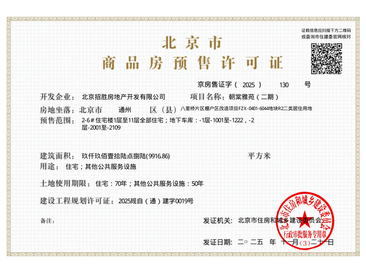 - 京房售证字(2025)130号 详情发证时间 2025-11-21绑定楼栋2-6#证件照片