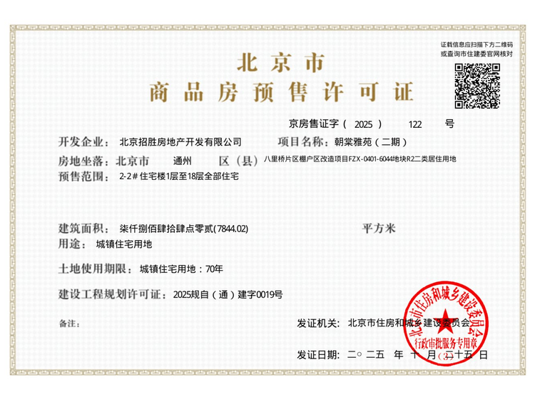 - 京房售证字(2025)122号 详情发证时间 2025-10-25绑定楼栋