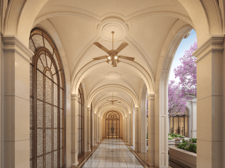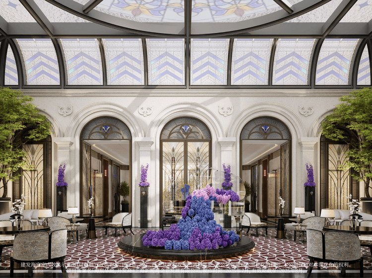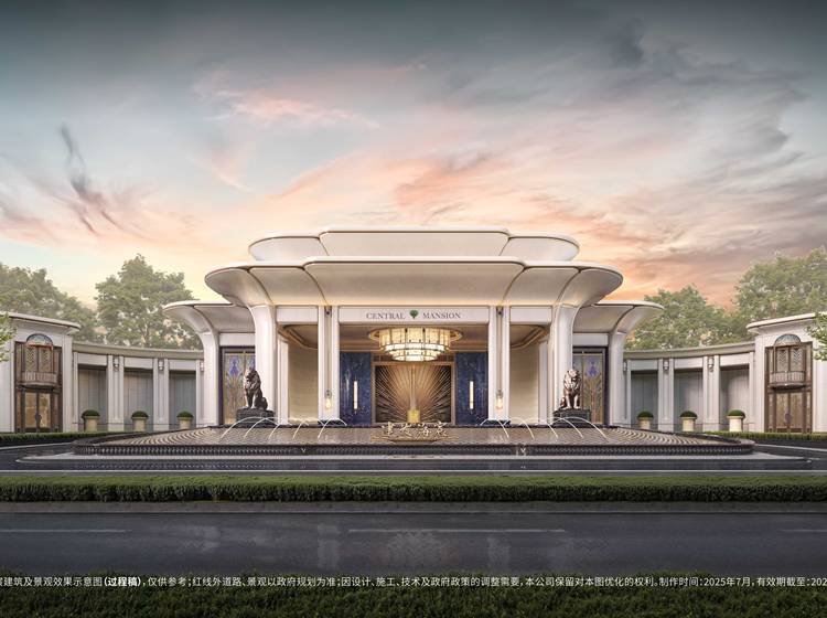 中轴景观分析:一条景观主轴串联六大主题场景,擘画「起承转合」的尊崇归家礼序,大宅气度油然而生