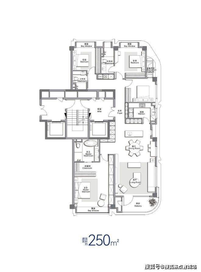 双主卧套房、约270°弧形阳台在该户型都是标配.