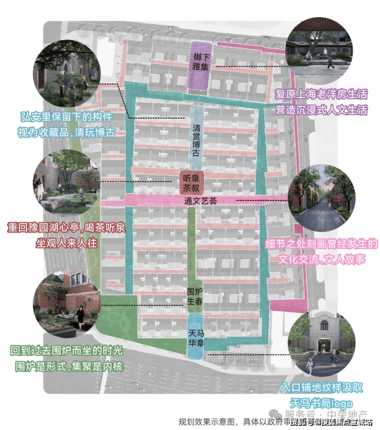 梳理行列式里弄肌理,社区植入海派文化记忆节点,打造蜿蜒曲折的次弄,结合小乔和花径,营造出别致丰富的生活活动空间。(最终以政府规划及审批为准)