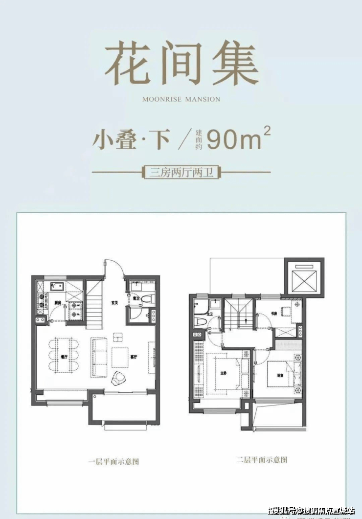 上叠(装修):一梯两户双开门设计,近20㎡独立电梯厅,每层带有5-10㎡露台,且顶楼附带30㎡灵动空间,底层面宽6+米,视野开阔,采光通透。