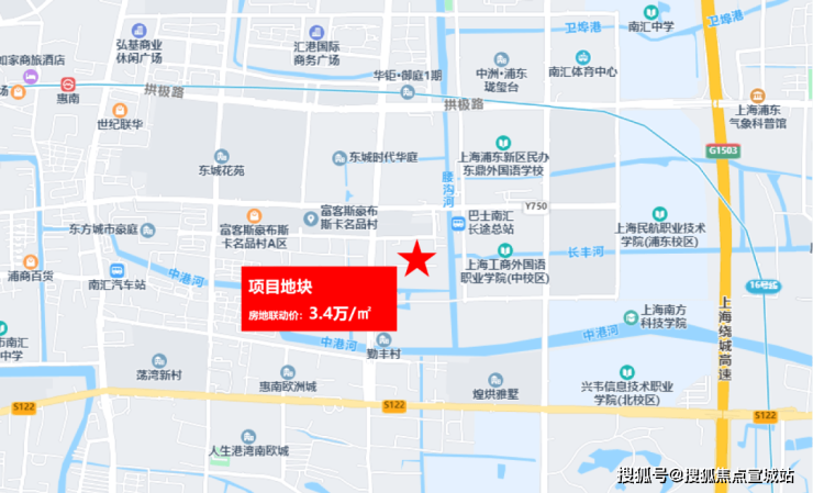 项目东至B8-4 地块,南至勤奋路,西至B8-6地块,北至B8-3 地块、B8-5 地块、勤东路,位于上海工商外国语职业学院的西侧,距离16号线惠南站直线约1.7公里。