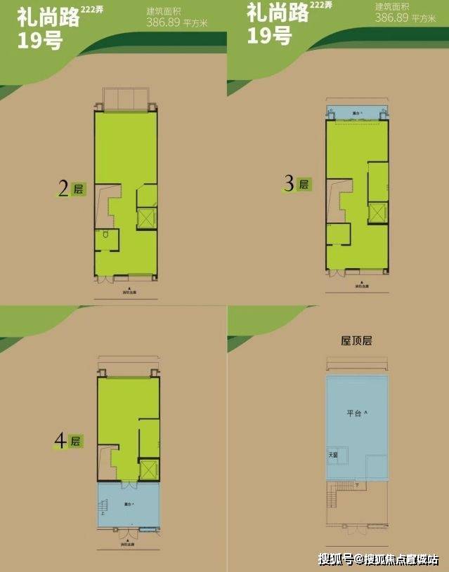 标准户型:地上4层(1~4层)、地下2层(夹层、B1层),多层商业空间,可灵活设计;外设独立门牌,内设独立电梯★,B1层可直达地下车库;首层设南北双门,连接绿化*;预设太阳能热水系统