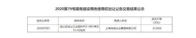 2020年5月29日,【宝山天铂】售楼处电话☎:400-8618-004✔✔✔上海洛昶企业管理有限公司以底价213426万元成功竞得宝山区宝山工业园BSPO-1801单元93-02地块。【宝山天铂】售楼处电话☎:400-8618-004✔✔✔